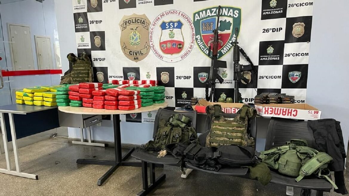 Dois homens foram presos nesta quarta-feira (10), pela Polícia Civil do Amazonas, após serem pegos com drogas em um flutuante em frente ao porto do bairro São Raimundo, na zona Oeste de Manaus. A dupla fazia a proteção das drogas com um arsenal de armas pesadas. O flagrante aconteceu durante operação deflagrada por agentes do 26° Distrito Integrado de Polícia (DIP).