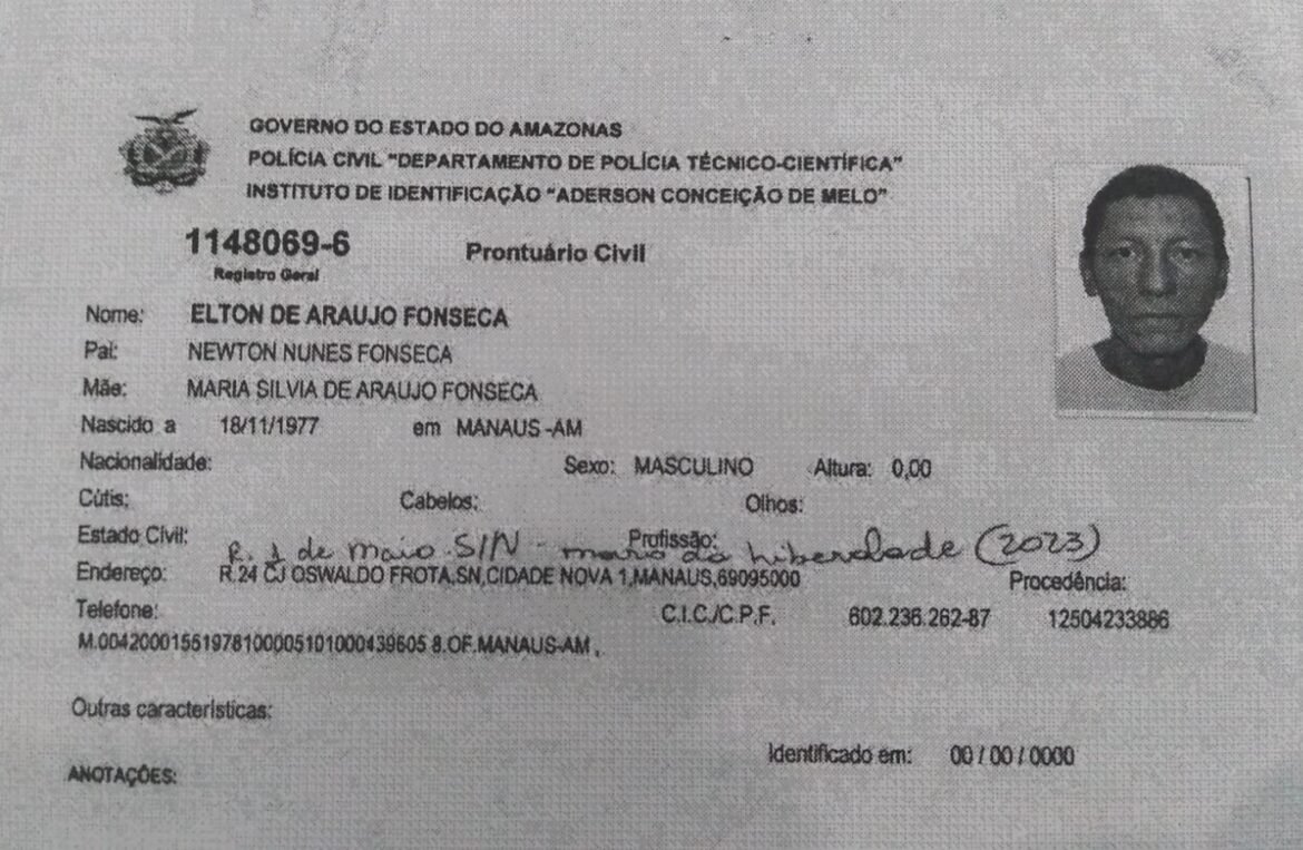 Caso haja algum parente de Elton de Araújo Fonseca na capital amazonense, o IML pede que este procure o setor de Serviço Social da unidade. O órgão lembra que os corpos permanecem na unidade por um período de 30 dias, e após esse prazo são sepultados como indigentes.
