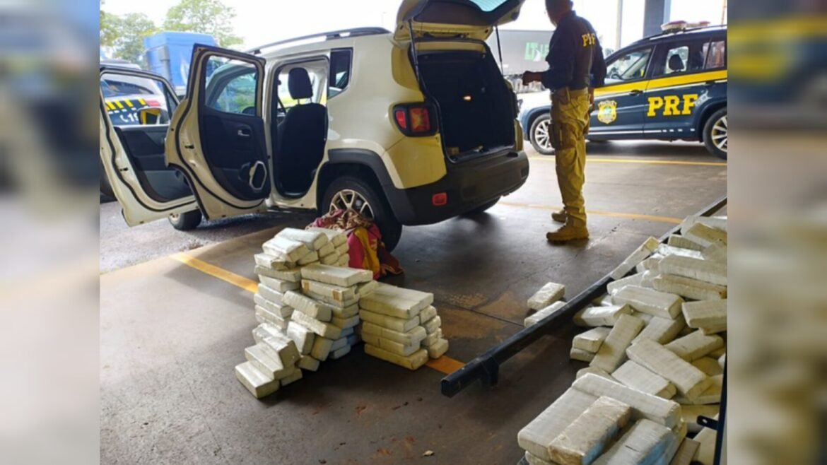A Polícia Rodoviária Federal (PRF) prendeu dois jovens, de 24 e outro de 20 anos de idade, na manhã deste sábado (02) em Chavantes/SP. A dupla foi flagrada quando transportava 247 tijolos de maconha no interior de um Jeep Renegade que tinha queixa de roubo em Londrina/PR.
