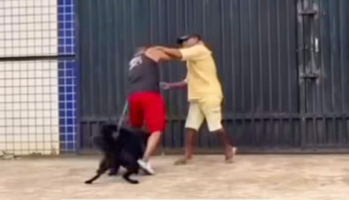 Segundo relatos, um dos homens se incomodou com o que chamou de “cheiro desinibido” do cachorro do outro e começou a discutir. A troca de palavras logo virou uma briga física no meio da rua, com socos e empurrões.