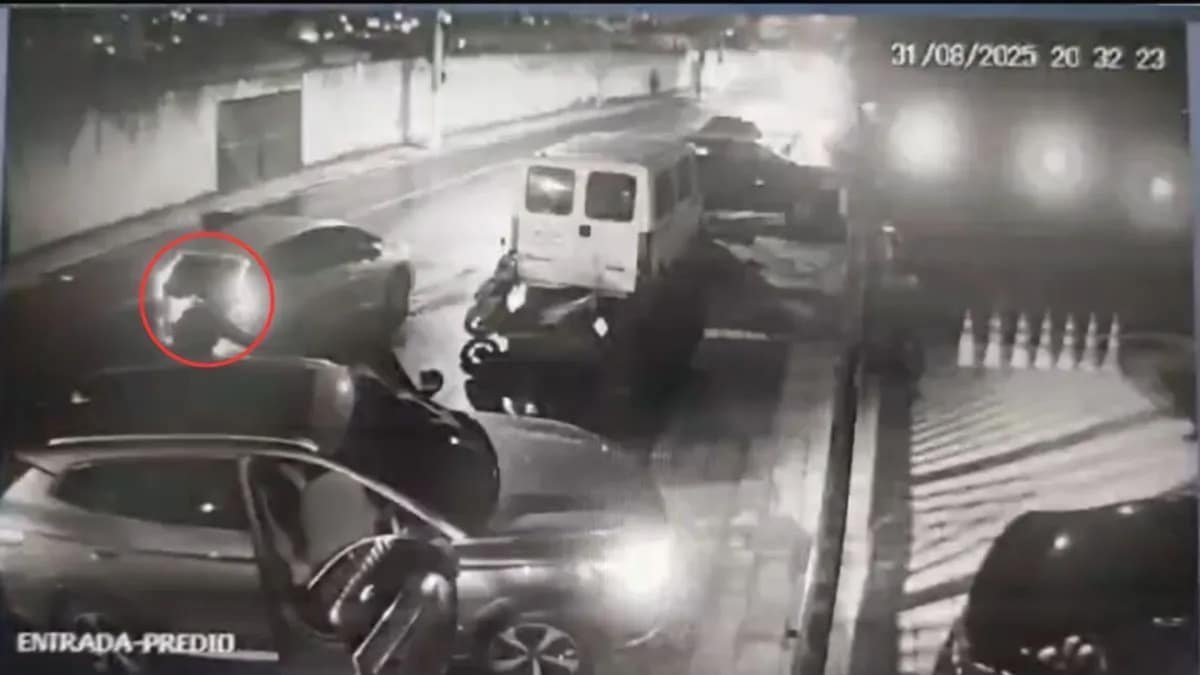 Imagens de câmeras de segurança mostram o momento em que o filho da vítima corre desesperado em direção ao pai, que cai no chão após ser atingido. O atirador volta para o carro e foge sem deixar pistas.